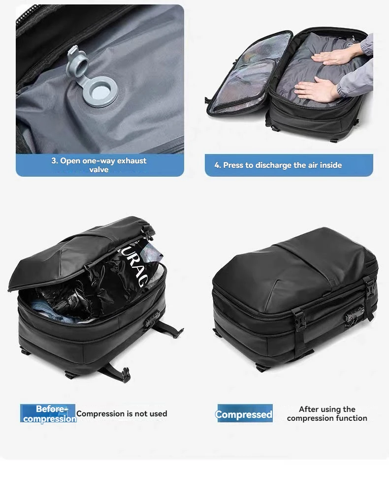 Le sac à dos à compression sous vide MOZHI est conçu pour les hommes et les femmes à la recherche d’un bagage polyvalent, léger et moderne. Grâce à son système de compression par airbag, il permet de réduire le volume des vêtements et d’optimiser l’espace de rangement, tout en conservant un excellent confort de port. Idéal pour les voyages, les déplacements professionnels et un usage quotidien.